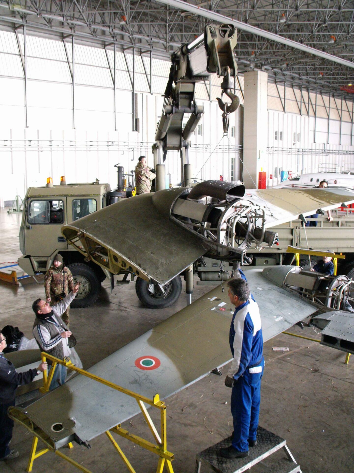 Il velivolo, non potendo essere trasferito presso l’aeroporto di Campoformido in volo, necessitava di essere smontato per il trasporto via “gomma”. Si è quindi reso necessario costituire un team che partecipasse all’ “Operazione Flamingo”.