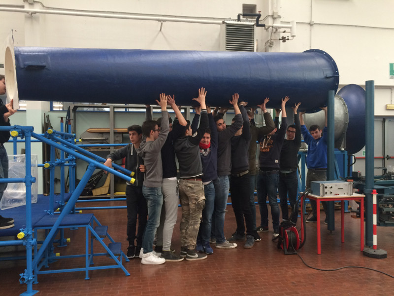 Dopo anni di gestazione ha visto la luce la prima GALLERIA DEL VENTO del Malignani, un gioiello di tecnica aeronautica di 17 mt. di lunghezza che permetterà ad allievi e docenti dell’istituto di testare profili, aerei… ma anche edifici, veicoli e atleti… insomma tutto ciò che desidera migliorare la propria aerodinamica fino a 80 m/s!