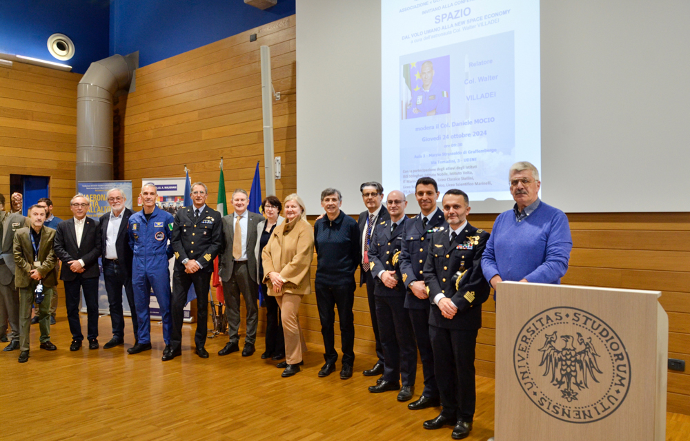 Il 24 ottobre u.s. presso l’Aula Magna 3 “Marzio Strassoldo di Graffembergo” dell’Università di Udine si è scolta la conferenza dal titolo “Spazio, dal volo umano alla new space economy” tenuta dall’Astronauta Col. Walter Villadei e moderata dal Col. Daniele Mocio del 5° Reparto dello Stato Maggiore dell’Aeronautica Militare.